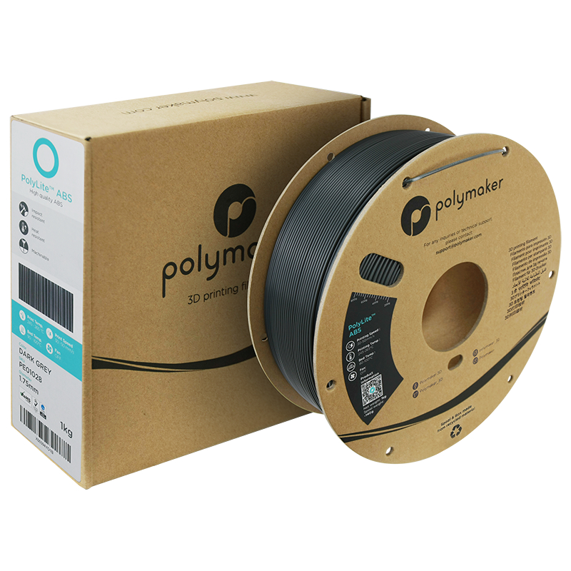 O filamento ABS Dark Grey da série PolyLite, desenvolvido pelo fabricante Polymaker, é um filamento ABS de alta qualidade que contém uma quantidade mínima de partículas finas (COV), a fim de limitar os riscos de nocividade.