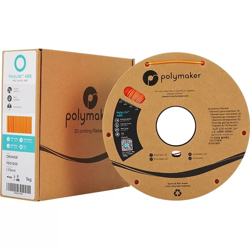 O filamento ABS Laranja da série PolyLite, desenvolvido pelo fabricante Polymaker, é um filamento ABS de alta qualidade que contém uma quantidade mínima de partículas finas (COV), a fim de limitar os riscos de nocividade.
