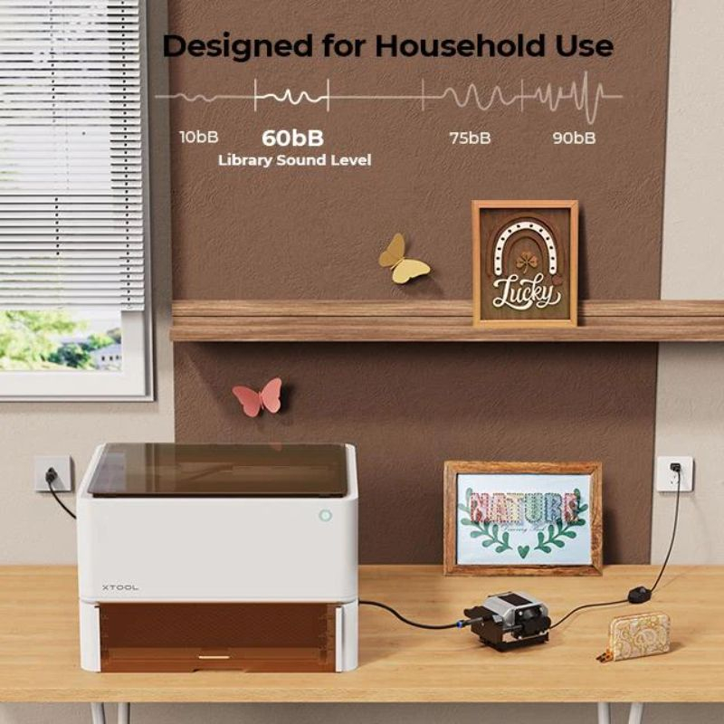 Este sistema de sopro mantém a área de trabalho limpa, melhora a qualidade do acabamento e protege os componentes essenciais da máquina. Um acessório essencial para tirar o máximo partido da sua xTool.