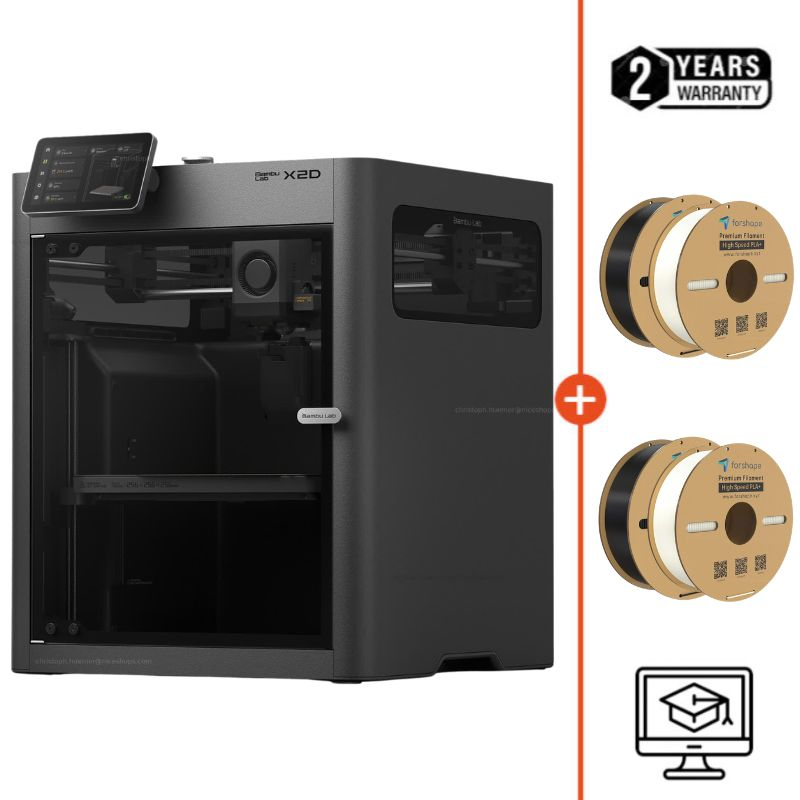 A Bambu Lab X2D é uma impressora 3D de bico duplo projetada para impressão multimaterial de alto desempenho e aplicações técnicas. Graças à sua câmara aquecida ativa, extrusor servo e deteção por IA, oferece qualidade consistente e alta fiabilidade.