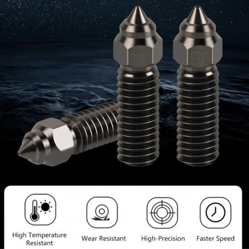 Especificações para Bico Forshape Tipo Volcano M6 Aço Temperado 0,4 mm Creality K1, K1 Max