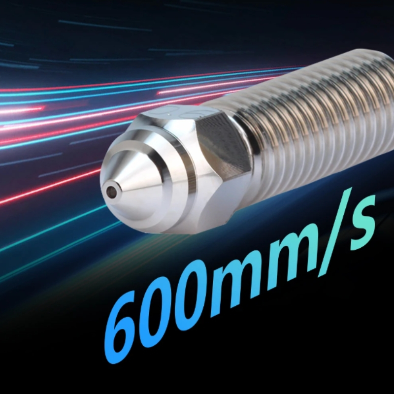 Este bico de liga de cobre proporciona alta condutividade térmica e alto fluxo para impressões em alta velocidade.
