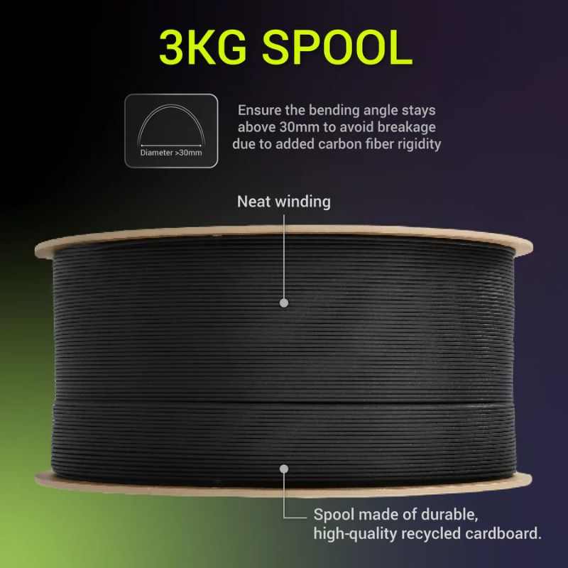O Polymaker Fiberon™ PET-GF15 Preto é adequado para usuários que procuram um filamento estável e resistente ao calor, fácil de imprimir com as precauções corretas. Sua baixa sensibilidade à umidade e compatibilidade com bicos resistentes à abrasão permitem produzir peças confiáveis para aplicações técnicas.