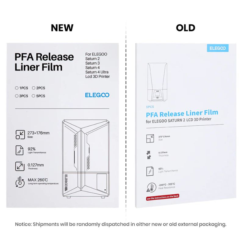 Especificações para Películas de PFA de 100 µ x5 (FEP 2.0) Elegoo Saturn 4 series, Saturn 3, Saturn 2, Saturn 8K