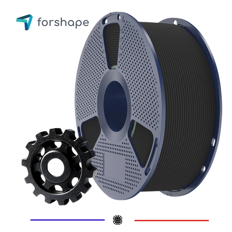 O filamento ecoPETG-CF Forshape é um PETG modificado com uma carga de fibras de carbono, projetado para atender às necessidades dos usuários que buscam robustez e confiabilidade. Este material combina a facilidade de impressão do PETG com uma rigidez significativamente aumentada graças à adição de carbono.