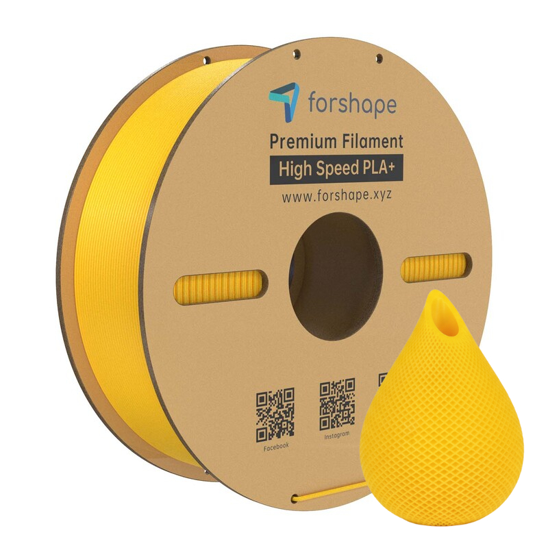 O filamento High-Speed PLA+ Forshape Amarelo (PLA de alta velocidade) permite impressões a velocidades de até 600 mm/s graças à sua formulação única que combina alta fluidez e resfriamento rápido.