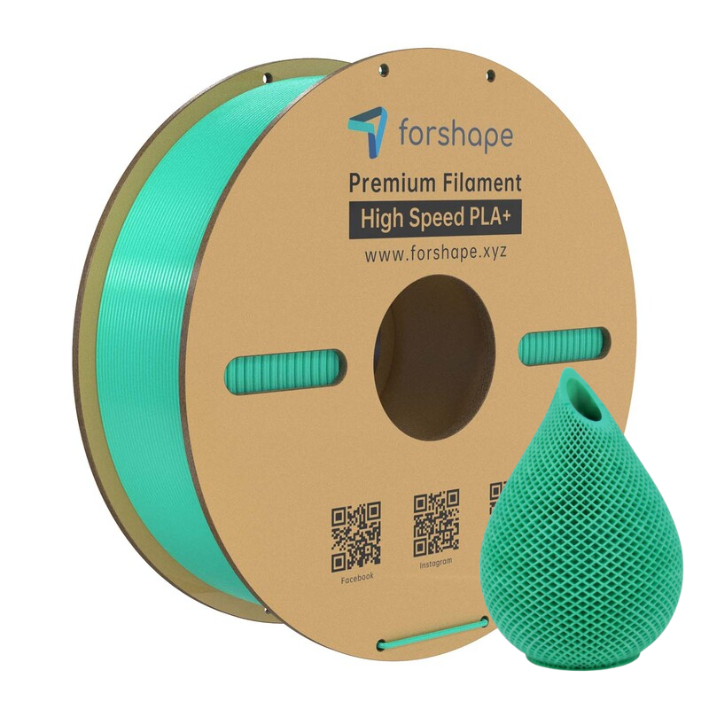 O filamento High-Speed PLA+ Forshape Verde (PLA de alta velocidade) permite impressões a velocidades de até 600 mm/s graças à sua formulação única que combina alta fluidez e resfriamento rápido.