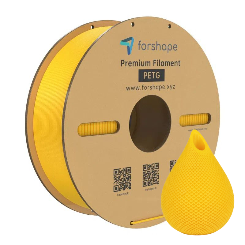 PETG Amarelo 1.75mm é um filamento sólido, hidrofóbico, translúcido e sem odor. O PETG Amarelo é um filamento PET premium que oferece alta resistência a impactos e boa estabilidade dimensional. Este filamento PETG Amarelo 1.75mm da Forshape combina as vantagens do PLA e do ABS.