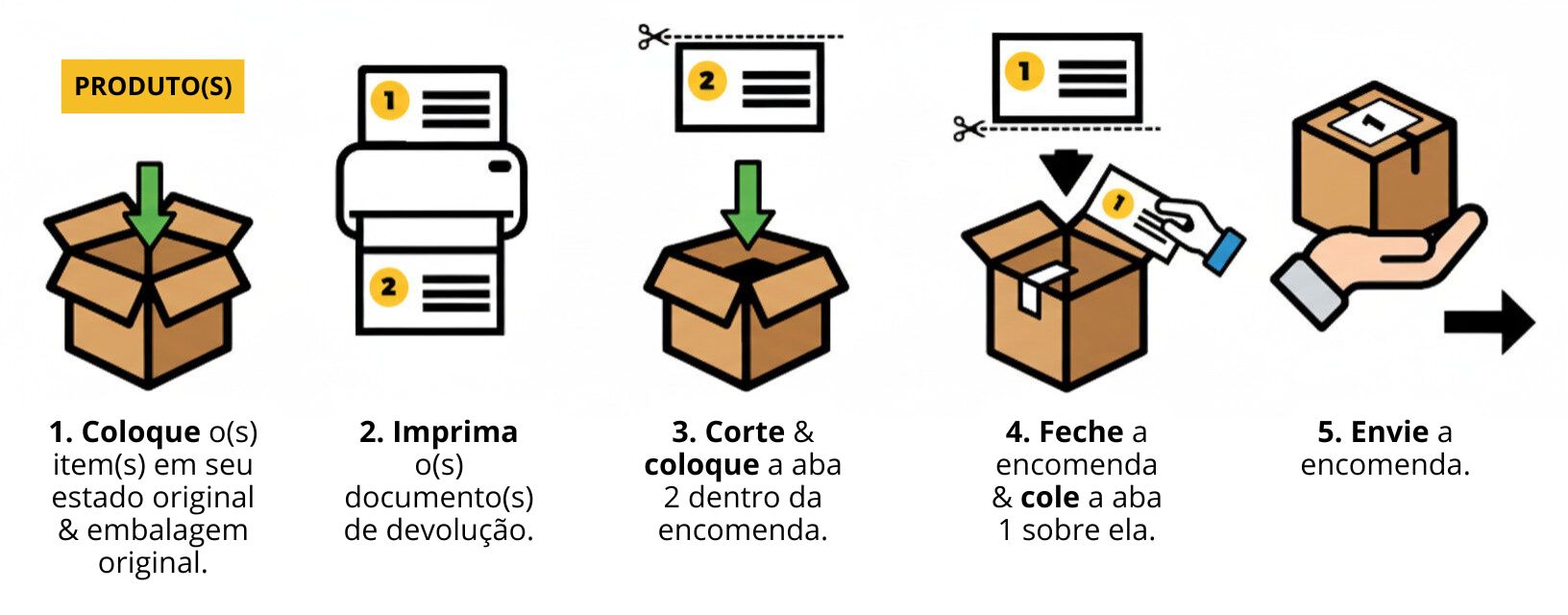 - Enviaremos uma etiqueta de devolução pré-paga para o retorno do produto.