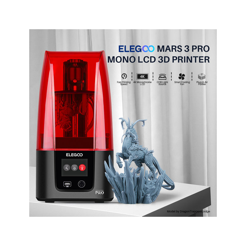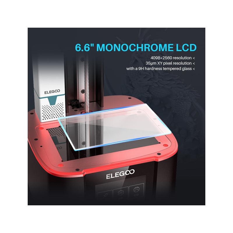 A ELEGOO Mars 3 Pro possui um ecrã 4K monocromático de 6,6 polegadas LCD com uma resolução de 4098*2560 e uma resolução XY de 35μm, proporcionando impressões com detalhes finos e precisão que ultrapassam em muito as impressoras FDM em termos de qualidade e velocidade.