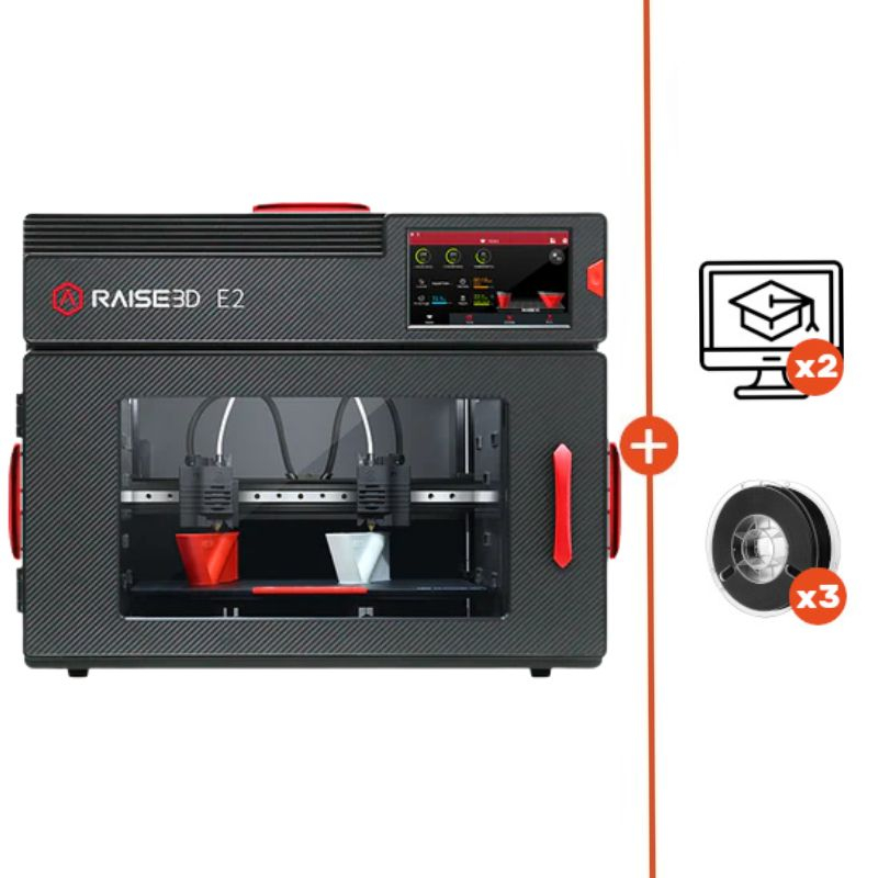 A E2 da Raise3D foi inicialmente projetada para integrar-se perfeitamente às exigências educacionais (em centros ou escolas). Possui sensores de abertura de porta que pausam automaticamente a impressora 3D. Um sistema de filtragem HEPA limita a emissão de partículas durante a impressão. Você e seus alunos permanecem em total segurança com esta impressora E2.