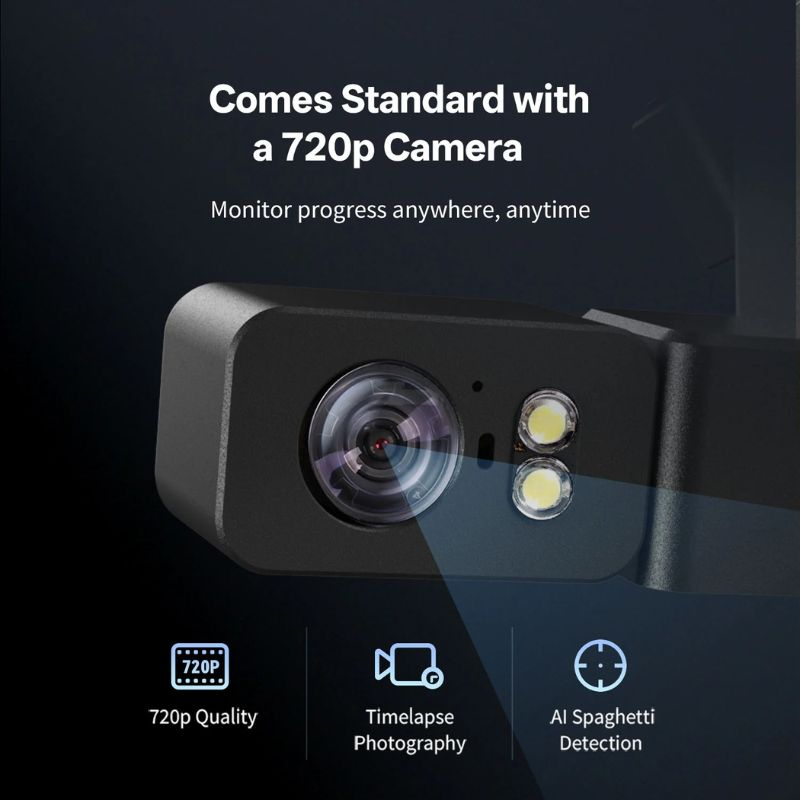 A câmara integrada permite monitorizar as impressões remotamente e gerir o processo em tempo real, proporcionando maior segurança e controlo em produções prolongadas.
