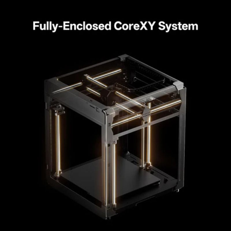 A estrutura CoreXY permite velocidades de até 600 mm/s com aceleração máxima de 20.000 mm/s². Perfeito para reduzir o tempo de produção mantendo elevada qualidade de impressão e precisão em peças complexas.