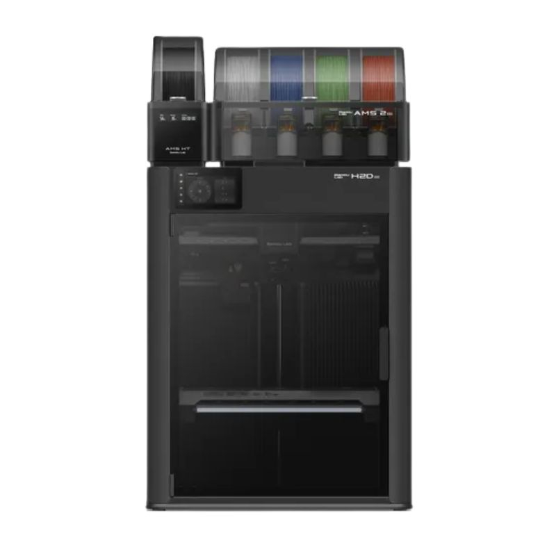 Equipado com os módulos multi-materiais da Bambu Lab, a H2D Pro pode gerenciar várias bobinas com secagem ativa do filamento.