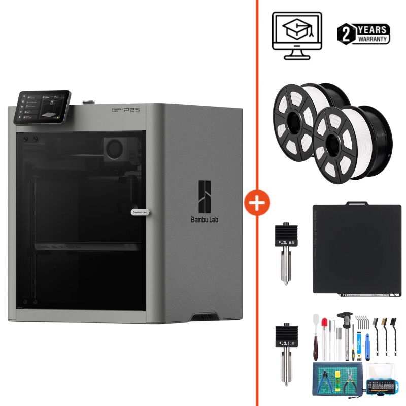 Você também pode encontrar a Bambu Lab P2S em um pack com consumíveis (e às vezes acessórios) que permitem iniciar suas primeiras impressões. Nossos consultores estão disponíveis para ajudar na escolha dos produtos complementares essenciais para o uso da máquina e adequados às suas necessidades.