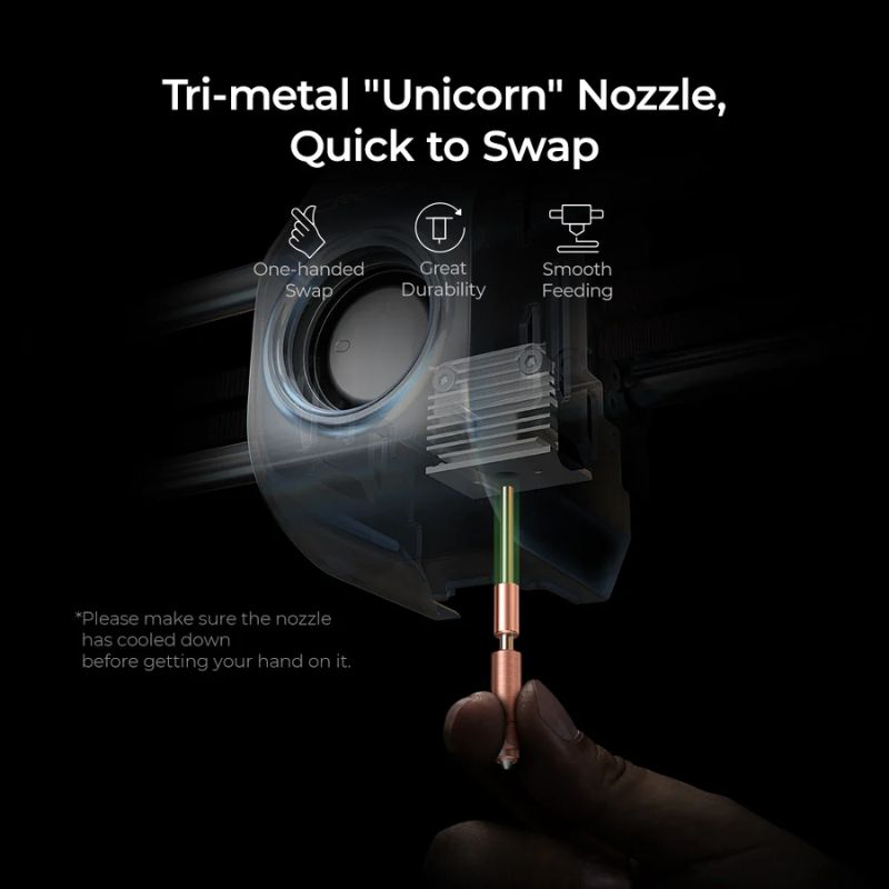 Os bicos de troca rápida permitem mudar o diâmetro ou o material em poucos segundos. Isso reduz significativamente o tempo de inatividade e limita erros de manuseio, facilitando a utilização multimaterial e multicolorida.