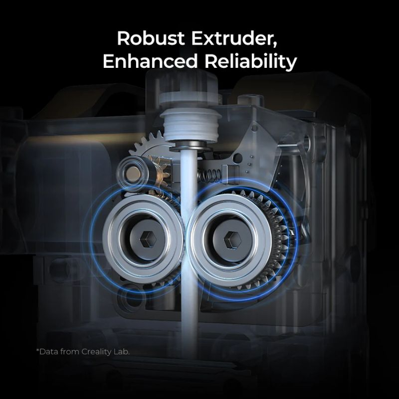 A Creality K1C 2025 combina motores otimizados e mecânica robusta para atingir altas velocidades de impressão (até 600 mm/s) mantendo máxima precisão.
