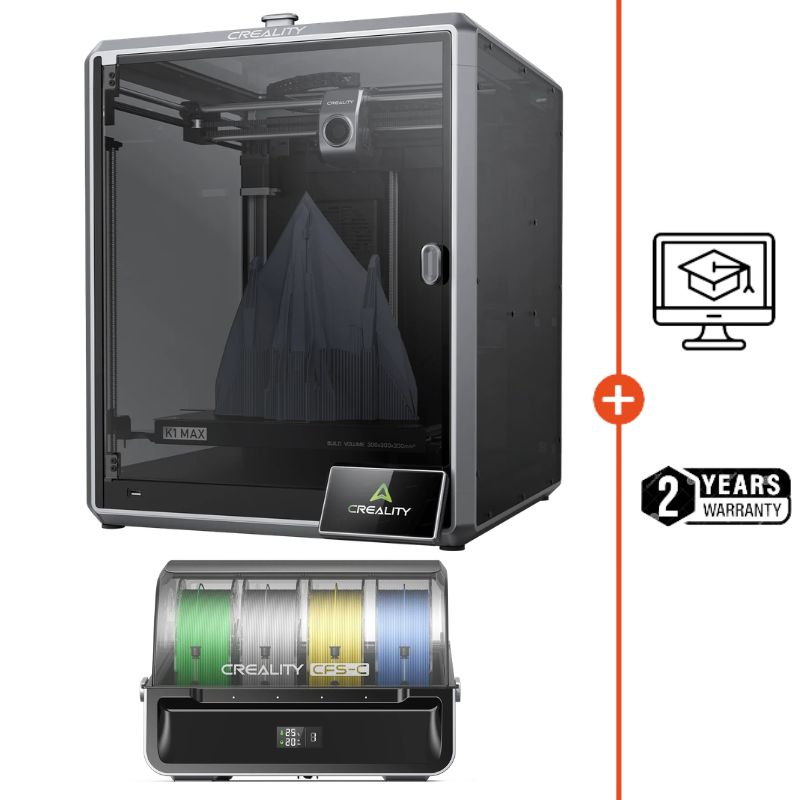A Creality K1 Max + CFS-C é uma solução multicolorida de alto desempenho e grande formato! Com gabinete fechado, alta velocidade e módulo CFS-C para até 4 cores, combina produtividade, criatividade e tecnologia avançada. Inclui IA com câmera inteligente e tecnologia LIDAR para controle preciso e automatizado de cada impressão.