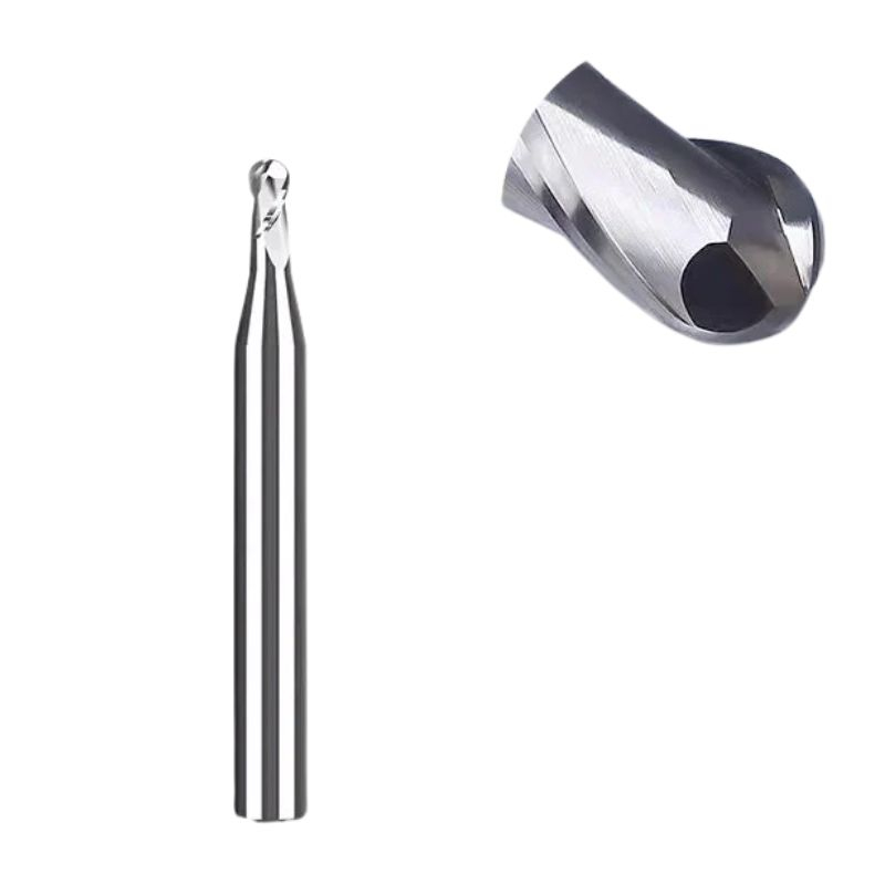 A fresa de duas flautas com ponta esférica 1.5mm x 4.5mm Makera Carvera é uma ferramenta projetada para usinagem de superfícies 3D, contornos curvos e geometria complexa em peças metálicas. Seu design de duas flautas facilita a evacuação de cavacos mantendo bom acabamento superficial.