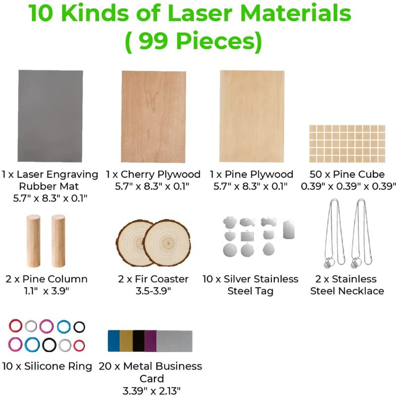 Com este pacote completo, traga à vida todos os seus projetos criativos: decoração de interiores, itens de madeira personalizados, cartões de visita gravados, quebra-cabeças coloridos e muito mais. Cada material vem com configurações de gravação recomendadas para ajudá-lo a obter os melhores resultados desde o primeiro uso.