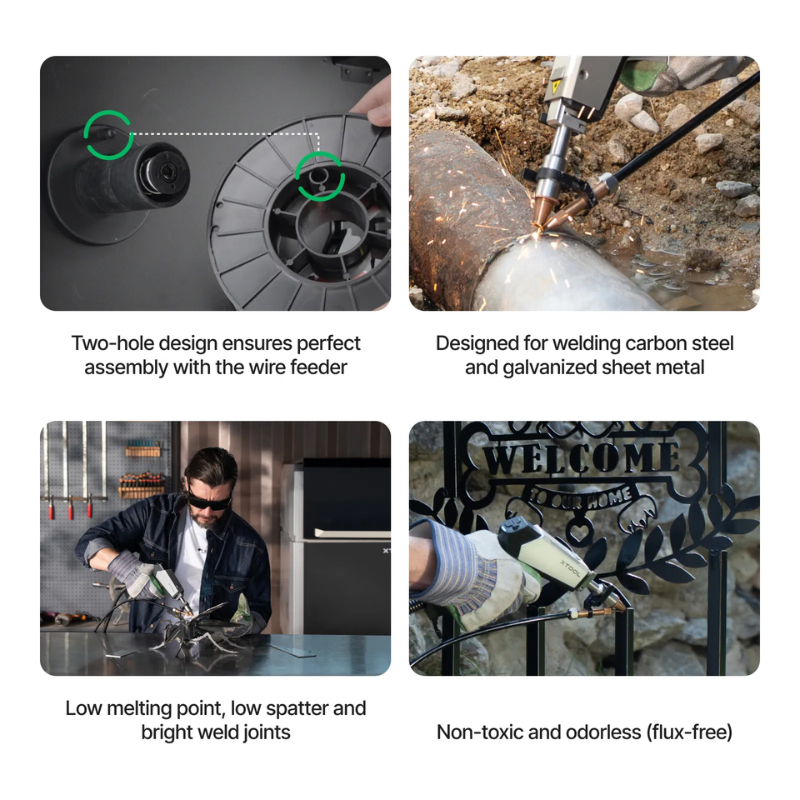 Este fio de 1 mm de diâmetro, fornecido em uma bobina de 5 kg, é ideal para processos de soldagem a laser xTool e outras aplicações que exigem precisão e consistência. É especialmente valorizado em fabricação mecânica, construção metálica e reparação industrial, onde a confiabilidade da junta é essencial.