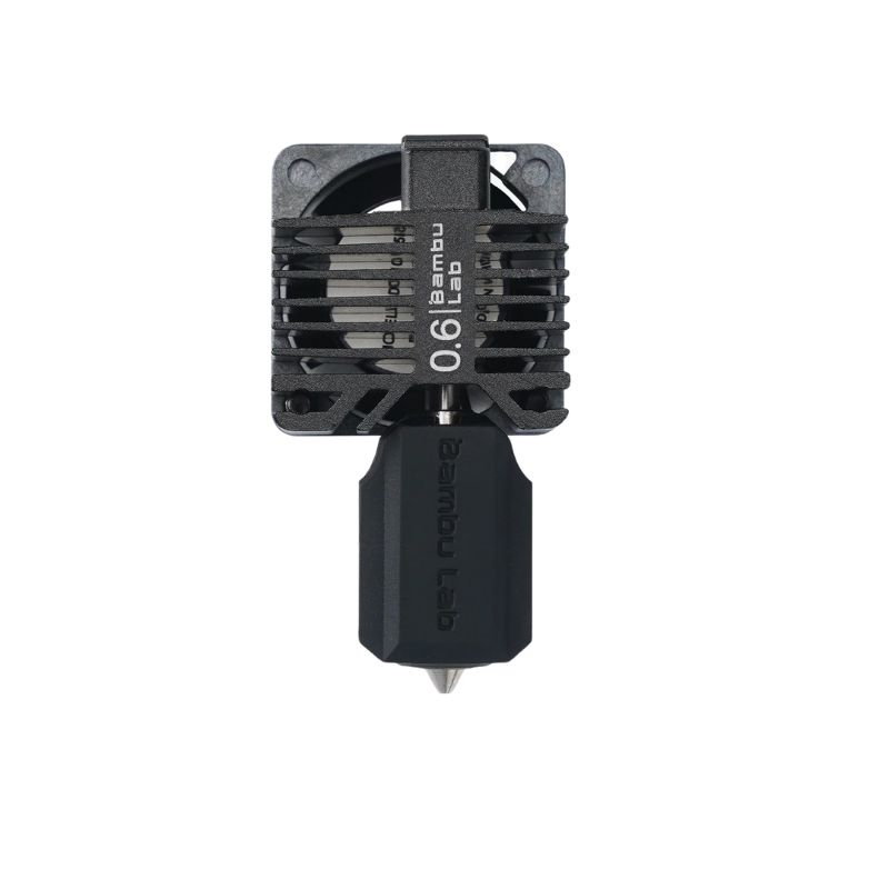 Hotend completo em aço temperado 0.6mm Bambu Lab P1. O hotend da Bambu Lab, equipado com um bico de 0,6mm em aço temperado, destaca-se pelo seu design all-in-one que integra a ventilação, o dissipador térmico, o tubo isolante, o bloco de aquecimento e o bico numa única unidade.