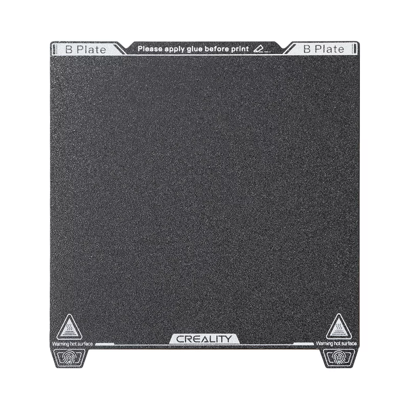 Placa de impressão dupla face Creality com um lado revestido com PEI e o outro com um adesivo texturizado.