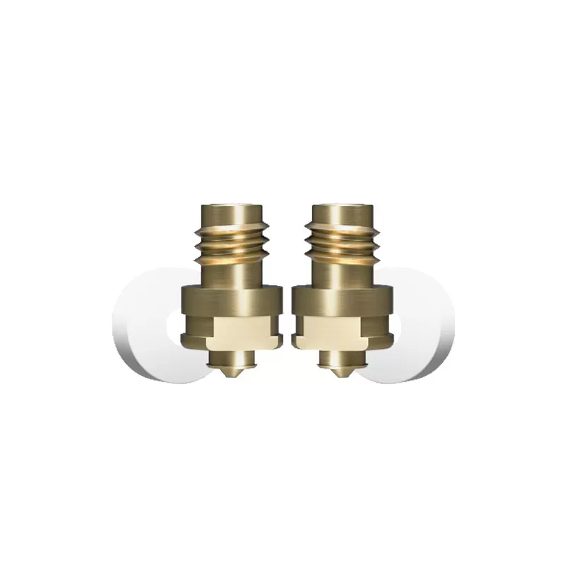 Conjunto de 2 bicos de latão com diâmetros de 0,3 mm e 0,6 mm, compatíveis com a impressora 3D Zortrax M200 Plus e o Hotend V3. Trata-se de uma peça de substituição oficial do fabricante.