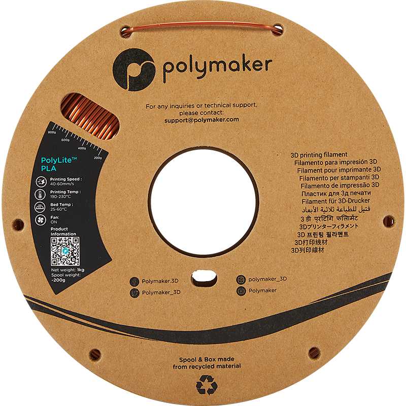 O filamento PolyLite PLA Silk Bronze é um tipo de PLA que proporciona um acabamento brilhante do tipo Silk.