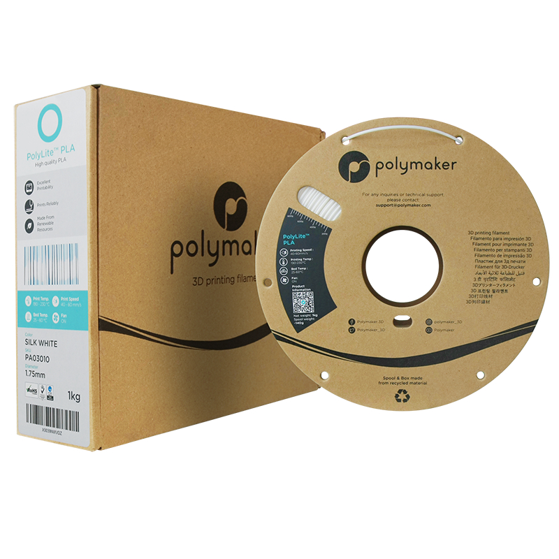 O PolyLite Silk PLA Branco é um filamento PLA brilhante com efeito acetinado e sedoso. O seu visual diferenciado e a facilidade de impressão tornam-no ideal para figuras e peças decorativas.