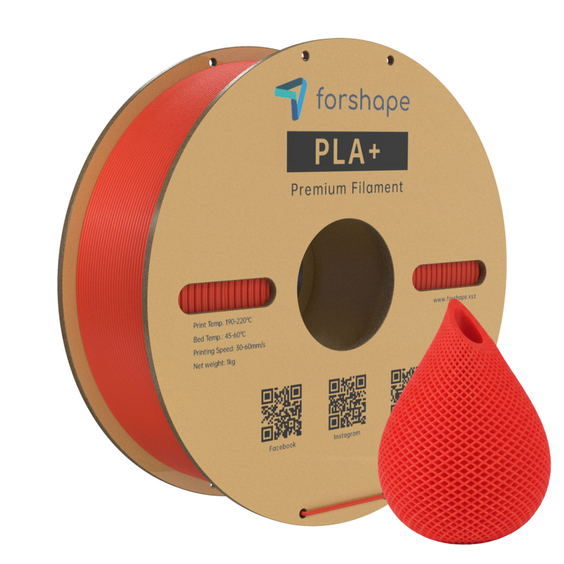 O filamento Forshape PLA+ Vermelho permite imprimir uma grande variedade de peças. O PLA é o material mais utilizado na impressão 3D, e o seu acabamento brilhante proporciona um aspeto visual agradável.