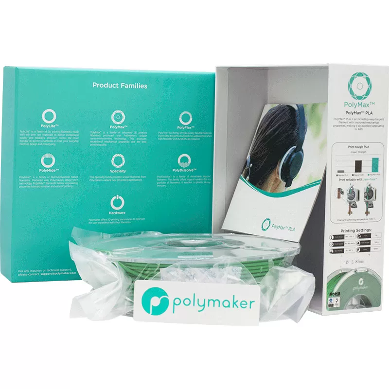 O PolyMax PLA Verde é 9 vezes mais resistente que um PLA padrão e até 20% mais robusto que o ABS. Graças à sua facilidade de impressão e às suas propriedades mecânicas excecionais para um PLA, o PolyMax é um material de primeira escolha.