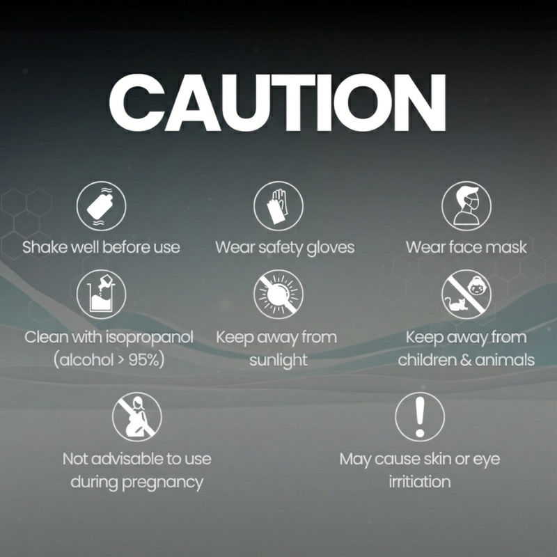 Agite bem o frasco antes de cada utilização. Use sempre luvas e máscara ao manusear a resina para evitar contacto cutâneo ou inalação direta.