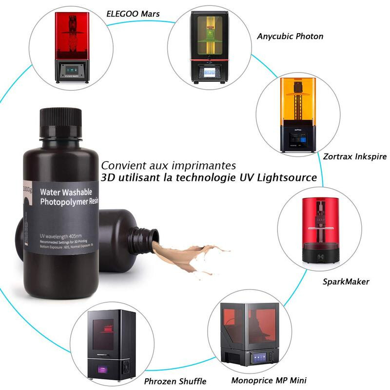 A resin lavável em água Elegoo na cor Bege (Tom de pele) é uma resin que pode ser limpa com água após a impressão, ao contrário do IPA.