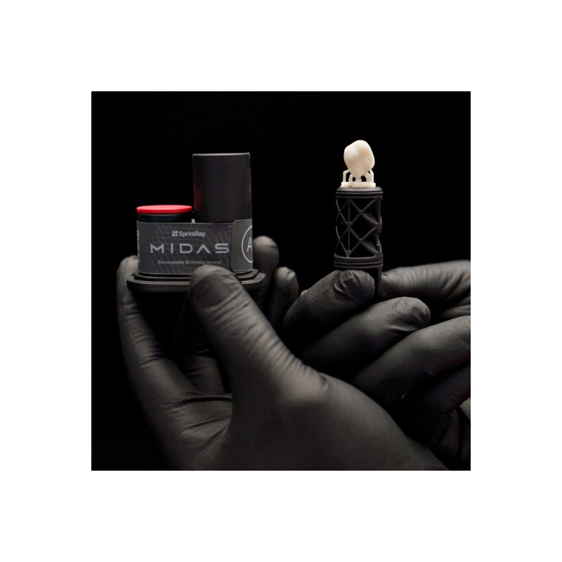 Estas cápsulas são compatíveis com a impressora 3D SprintRay Midas, oferecendo uma integração ideal para uma produção rápida e confiável de restaurações dentárias.