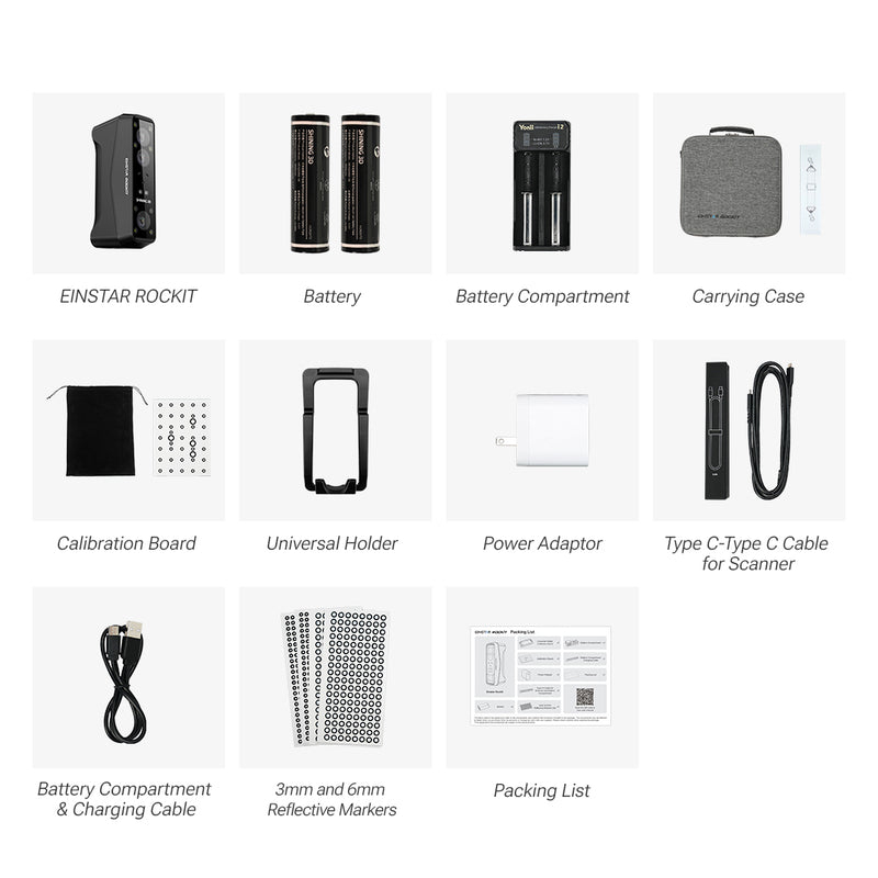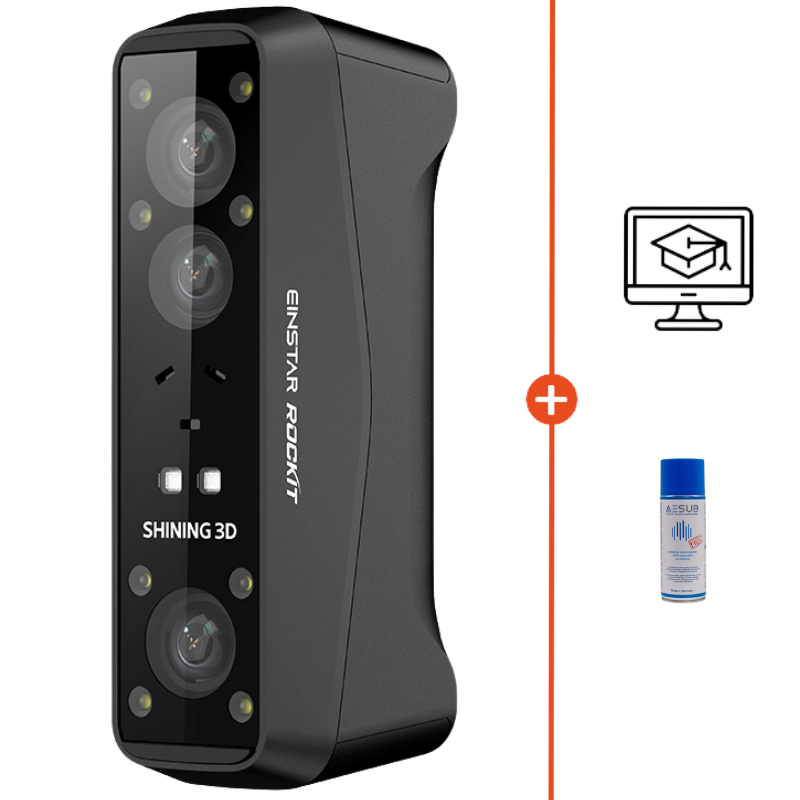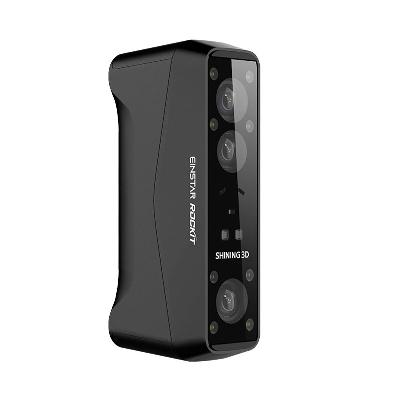 O Shining 3D Einstar Rockit é um scanner 3D portátil de nova geração, combinando velocidade, precisão e total liberdade graças ao seu design sem fios. A sua tecnologia híbrida de laser azul + VCSEL infravermelho permite a captura de superfícies complexas, escuras ou brilhantes sem marcadores.