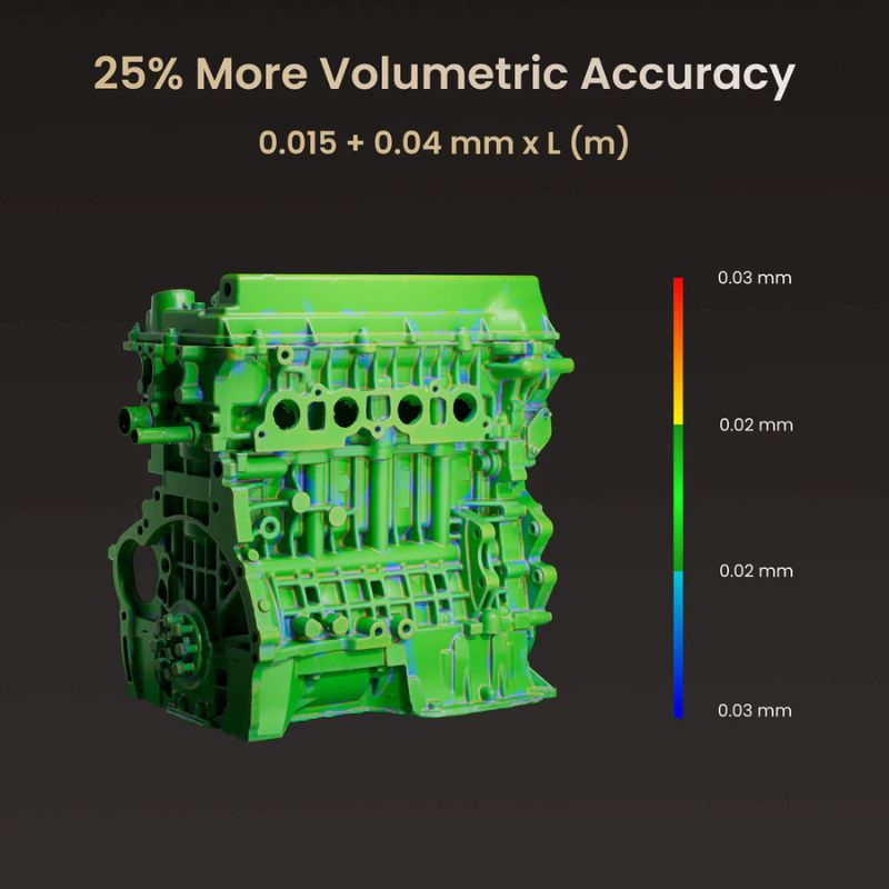 A sua abordagem multi-modo permite lidar eficazmente com superfícies escuras, brilhantes ou detalhadas, com ou sem marcadores. É uma ferramenta desenvolvida para profissionais de engenharia inversa, controlo de qualidade e fabrico aditivo.