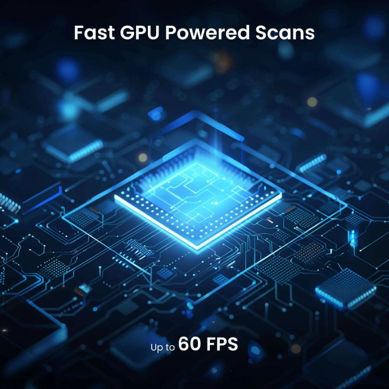Com precisão até 0,01 mm e alta velocidade de digitalização, é uma ferramenta fiável para engenharia reversa, controlo de qualidade e reprodução 3D. Concebido para reduzir a utilização de sprays, facilita a digitalização de superfícies difíceis mantendo excelente fidelidade de dados.