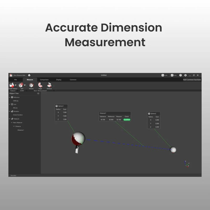 O Revo Measure garante medições exatas nos seus modelos 3D, com confiabilidade ideal para controle de qualidade e verificação de peças, sejam pequenas partes mecânicas ou componentes complexos.