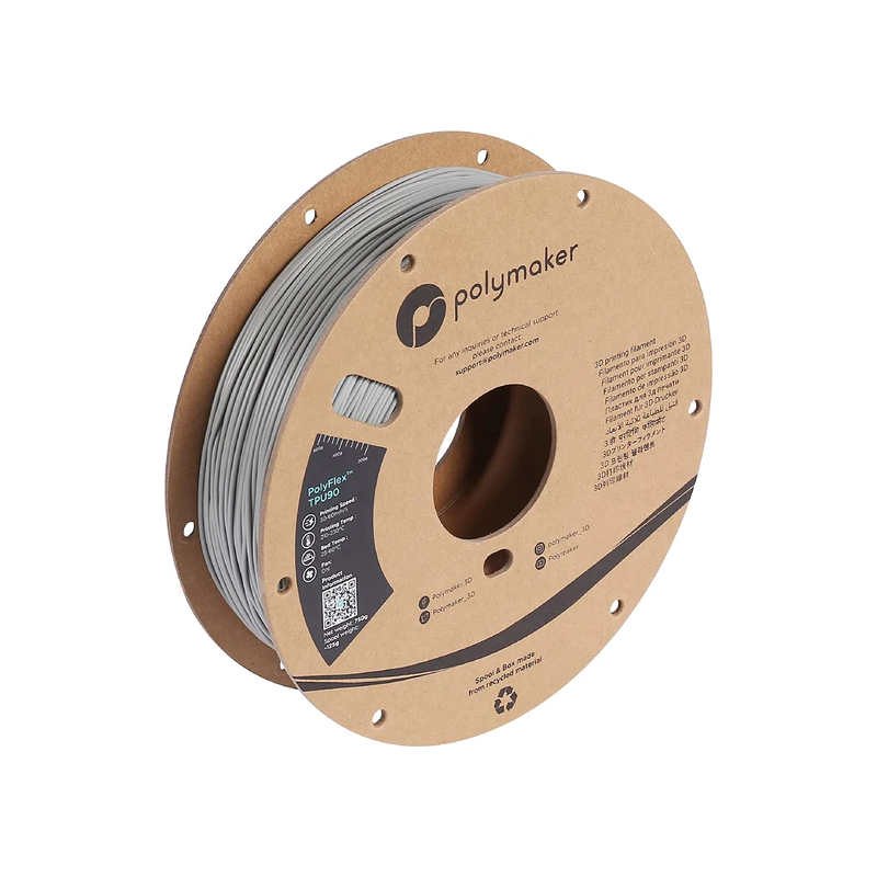 PolyFlex TPU-90A Cinza da Polymaker é um filamento muito flexível à base de Addigy™. Possui alta resistência a rasgos e aos UV, sendo fácil de imprimir.